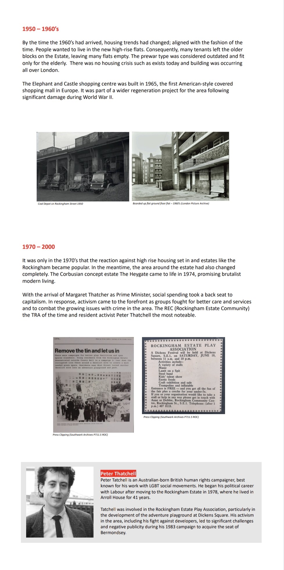 In celebration of the Rockingham Estate’s 90th anniversary, residents and former residents came together in 2024/25 to share their memories and reflections on how the estate has changed over time. Their recorded stories have been paired with a collection of photographs showcasing the estate and some of the people who have lived here, through the years.